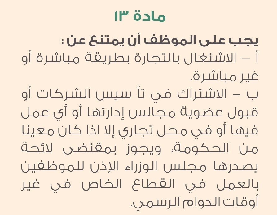 تعميم بشأن اشتغال الموظف الحكومي بالتجارة